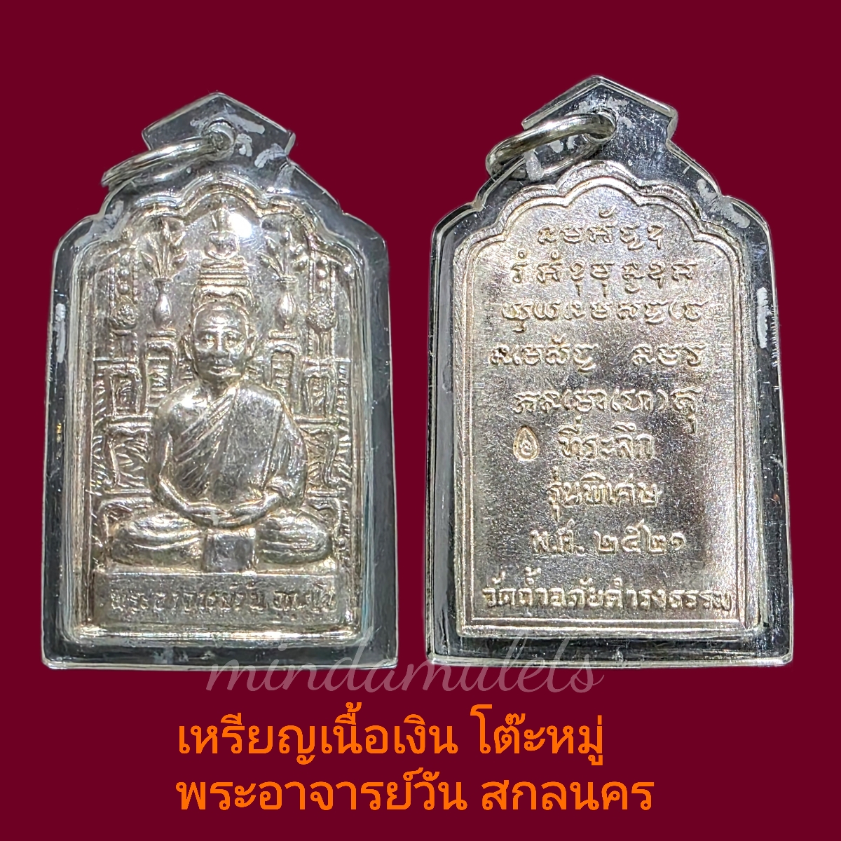 เหรียญโต๊ะหมู่ เนื้อเงิน รุ่น 64 พระอาจารย์วัน อุตตโม หายาก 1 ใน 109 เหรียญ