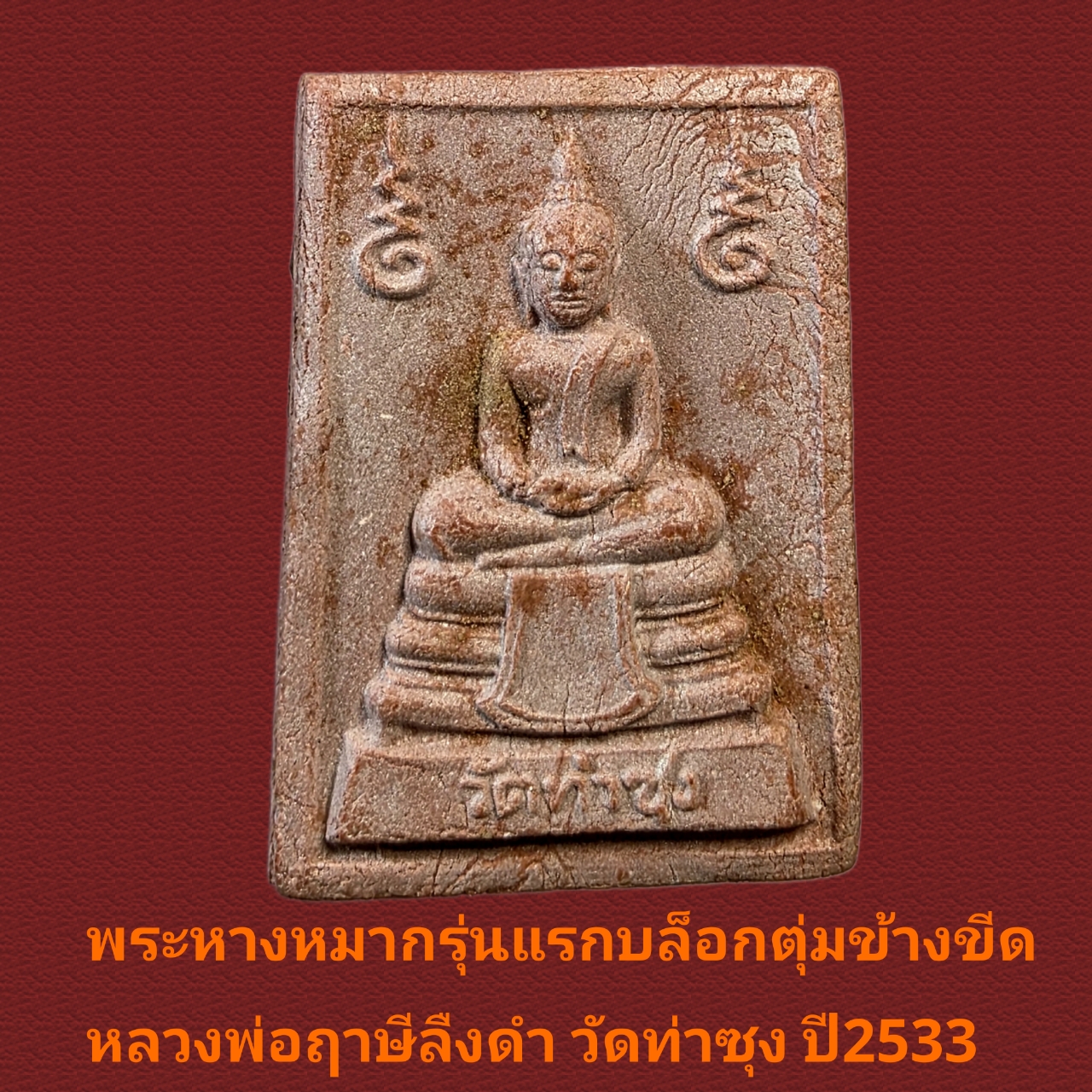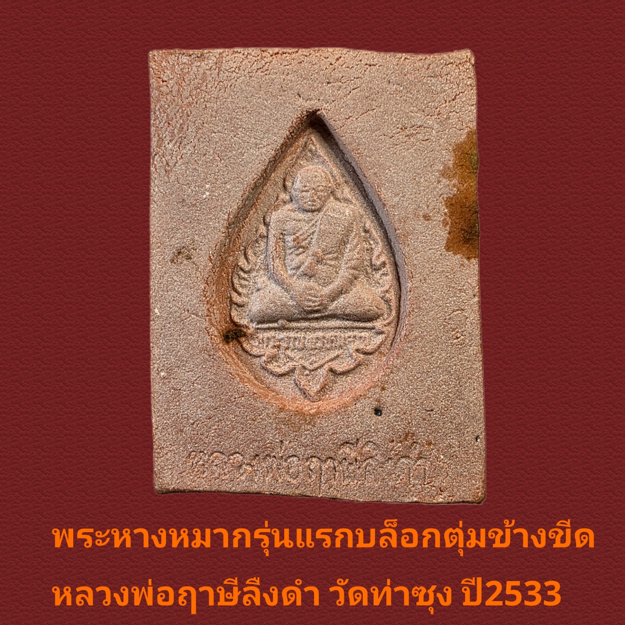 ร้านขอเสนอ พระหางหมากบล็อกฐานตุ่มข้างขีด หลวงพ่อฤาษีลิงดำ วัดท่าซุง อุทัยธานี สภาพสวยหมากมีคราบน้ำหมากลอยขึ้นตามผิวขององค์ แท้ดูง่ายตามหลักสากล ของเก๊พระหางหมากมีมากมายในสนาม ของแท้ตัวหนังสือฟอนต์ด้านหลังคมชัด ดูขอบตัดข้างพระต้องเรียบร้อย องค์นี้ที่ข้อศอกด้านหลังหลวงพ่อฤาษีลิงดำจะมีเนื้อเกิน และจะมีตุ่มเล็กๆใต้เข่าหลวงพ่อฤาษีลิงดำ ทำให้ดูง่ายแท้ชัวร์ จำนวนพระหางหมากสร้างน้อยกว่าพระคำข้าว เพราะมีจำนวนสร้างแค่ 1 ล้านองค์ ทำพิธีปลุกเสกครั้งแรกเมื่อวันที่ 24 สิงหาคม 2533 ( หลวงพ่อพูดในงานพิธีปลุกเสกว่าพระหางหมากเข้าพิธีในวันนี้มีจำนวน 6แสนองค์ จากวิดีโอเทปพิธีปลุกเสกพระหางหมากวันศุกร์ที่ 24 สิงหาคม 2533 ) ส่วนอีก 4แสนองค์ ปลุกเสกเมื่อวันที่ 29 ธันวาคม 2533 (พร้อมกับพระคำข้าวรุ่น 2 ที่ปลุกเสกคร้ังแรก ) พระหางหมาก หลวงพ่อฤาษีลิงดำ มีพุทธคุณครอบจักรวาล และยังเด่นมากด้านเมตตาโชคลาภ