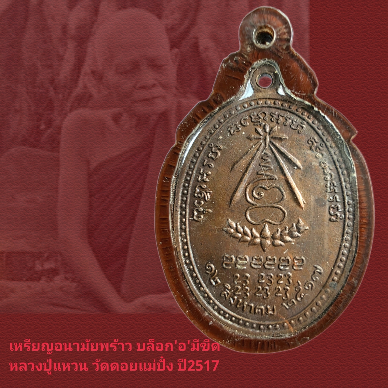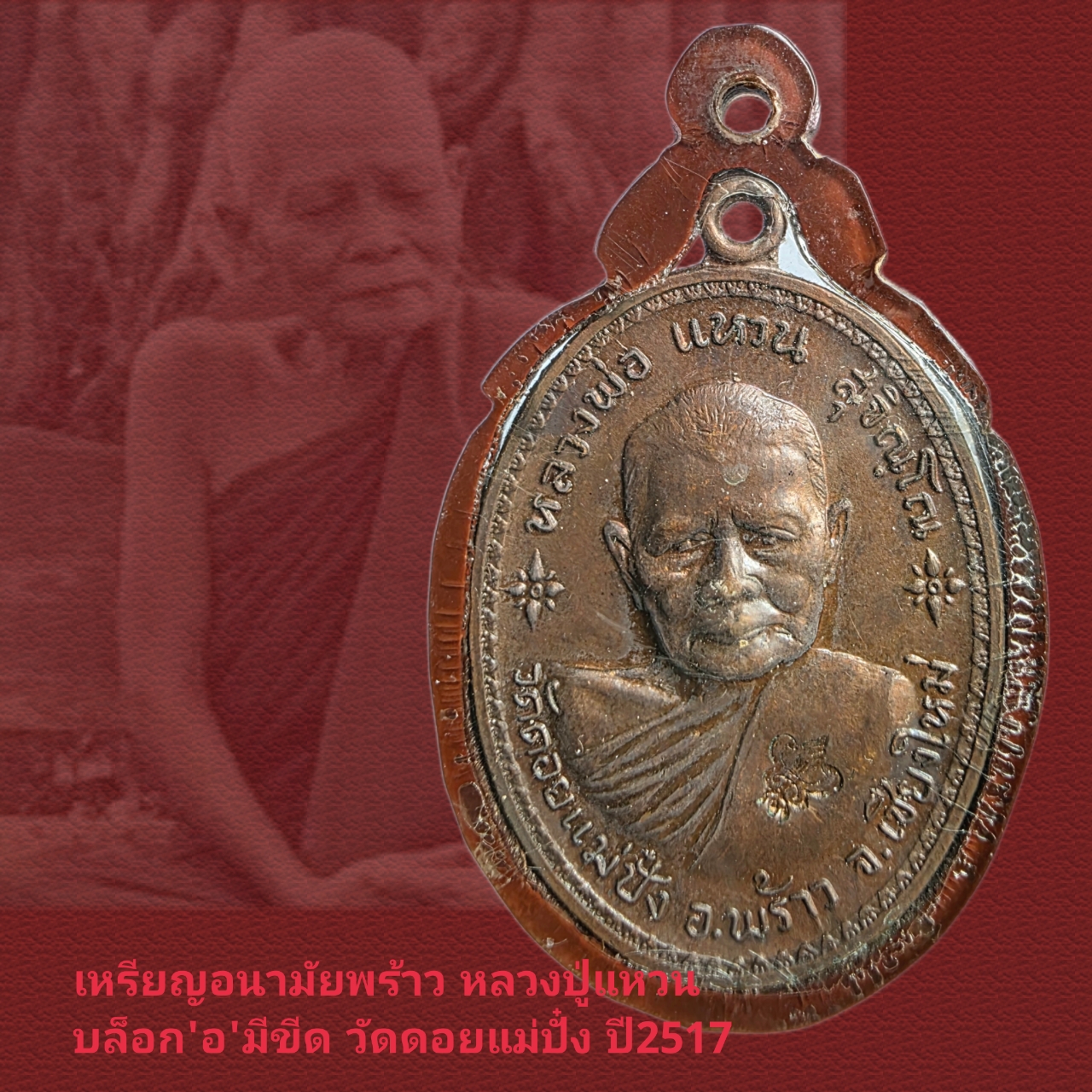 ร้านขอแนะนำ เหรียญรุ่นอนามัยพร้าว หลวงปู่แหวน วัดดอยแม่ปั๋ง เชียงใหม่ ปี2517 สภาพสวยมากๆอยู่ในเลี่ยมพลาสติดเก่า ถ่ายรูปค่อนข้างยากจากแสงสะท้อนและความเก่าของพลาสติคที่ไม่ใส แต่เหรียญนี้ถ้าเห็นองค์บอกว่าสภาพสวยมากๆ ผิวเดิม เหรียญที่เสนอนี้เป็นบล็อก “อ” มีขีด โค้ดตอกคมชัด เหรียญรุ่นนี้เป็นเหรียญที่แกะใบหน้าหลวงปู่ได้สวยงามมาก เป็นเหรียญที่มีเจตนาการสร้างดีเพื่อสร้างสถานีอนามัยพร้าวในสมัยนั้น จำนวนการจัดสร้าง 75000เหรียญ มีพิธีปลุกเสกใหญ่ หลวงปู่แหวน อธิษฐานเสกให้นานมากถึง 23 นาที ปกติท่านเสกเหรียญทั่วไปไม่ถึง 5นาที เหรียญรุ่นนี้ปัจจุบันมีของเก๊ออกมาเยอะมาก แต่เหรียญที่เรานำเสนอนี้แท้ตามหลักสากลรับรองแขวนไปโชว์เซียนที่ตลาดพระเชียงใหม่รับรองไม่มีใครมาสวด