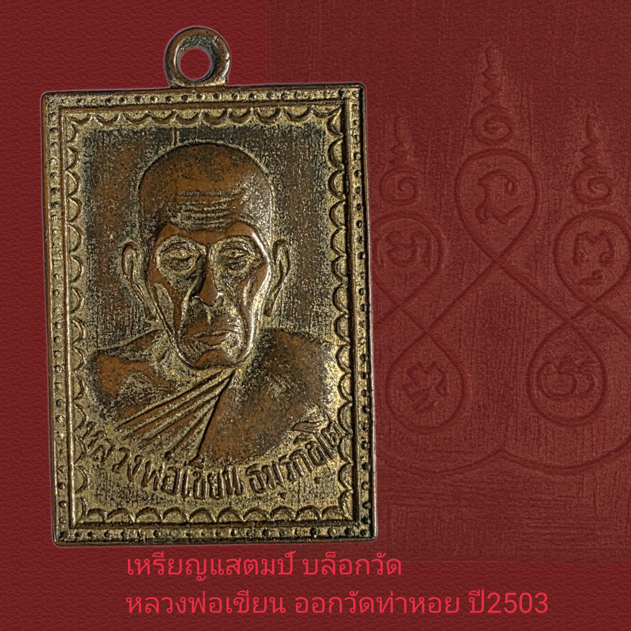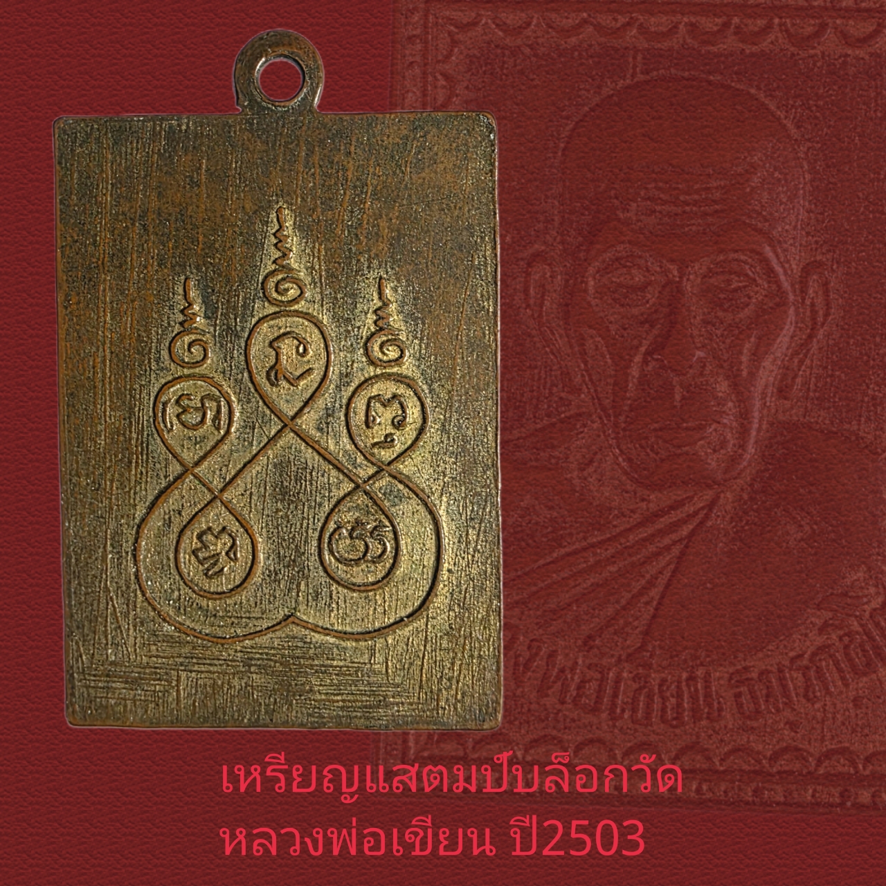 ร้านขอเสนอ เหรียญแสตมป์ บล็อกวัด กะไหล่ทอง หลวงพ่อเขียน วัดสำนักขุนเณร พิจิตร สร้างปี 2503 สภาพพอสวยกะไหล่ทองเดิมๆไม่มีย้อมแมว เหรียญแสตมป์ หลวงพ่อเขียน เท่าที่เล่นหากันเป็นสากลจะมีอยู่ 2 พิมพ์คือ บล็อกวัดหรือบล็อกหนึ่ง ด้านหลังเป็นยันต์ห้า แบบที่เราเสนอ ส่วนอีกบล็อกเรียกว่าบล็อกชาวบ้านหรือบล็อกสอง จะมียันต์เพิ่มอีกหนึ่งแถวด้านล่างยันต์ห้า สำหรับเหรียญสี่เหลี่ยม เท่าที่ทราบจะมีแต่เนื้อทองแดง กะไหล่ทองและกะไหล่เงิน แต่กะไหล่ทองจะหายากกว่าครับเพราะแม้แต่ในหนังสือรวมเล่มปกแข็งยังหาของแท้กะไหล่ทองมาลงไม่ได้ เหรียญแสตมป์ หลวงพ่อเขียน รุ่นนี้ออกที่วัดท่าคอย ในสมัยนั้นได้นิมนต์พระเกจิดังๆมาร่วมปลุกเสกอีกหลายองค์ เท่าที่ทราบมีหลวงพ่อทบ วัดชนแดน หลวงพ่อกัน วัดเขาแก้ว เป็นต้น เป็นเหรียญดีพุทธคุณสูงที่น่าบูชายิ่ง จำนวนการสร้างในสมัยนั้นไม่เยอะครับ เหรียญที่เรานำเสนอแท้ชัวร์ ไม่มั่วนิ่ม คมชัดลึก ผิวตึงกะไหล่ทองแห้งเก่า ดูด้วยตาเปล่าไม่ส่องกล้องก็ยังได้ครับ
